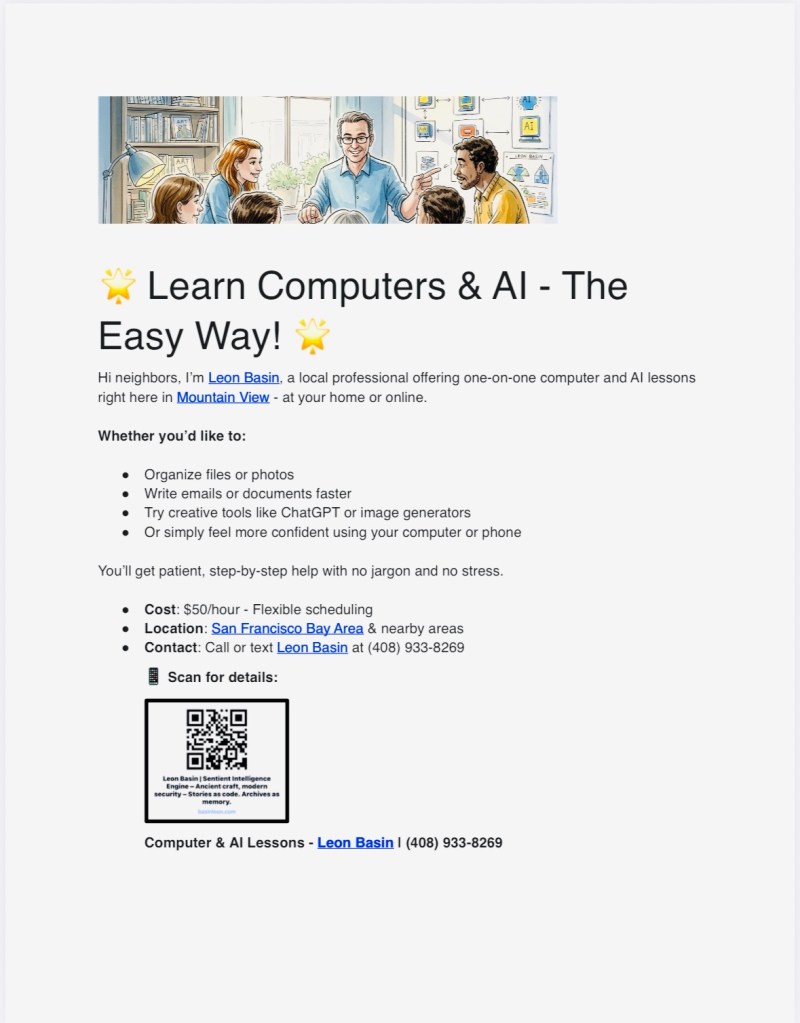 I help neighbors get comfortable with everyday tech-computers, phones, and the latest AI tools-without the jargon or stress.
