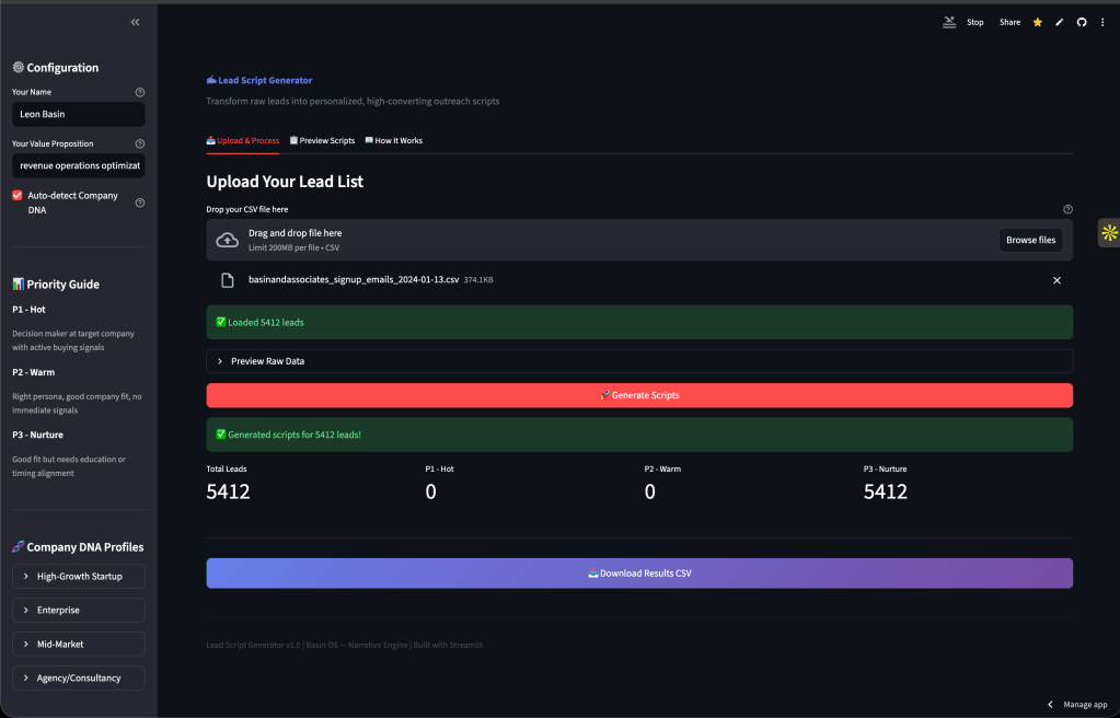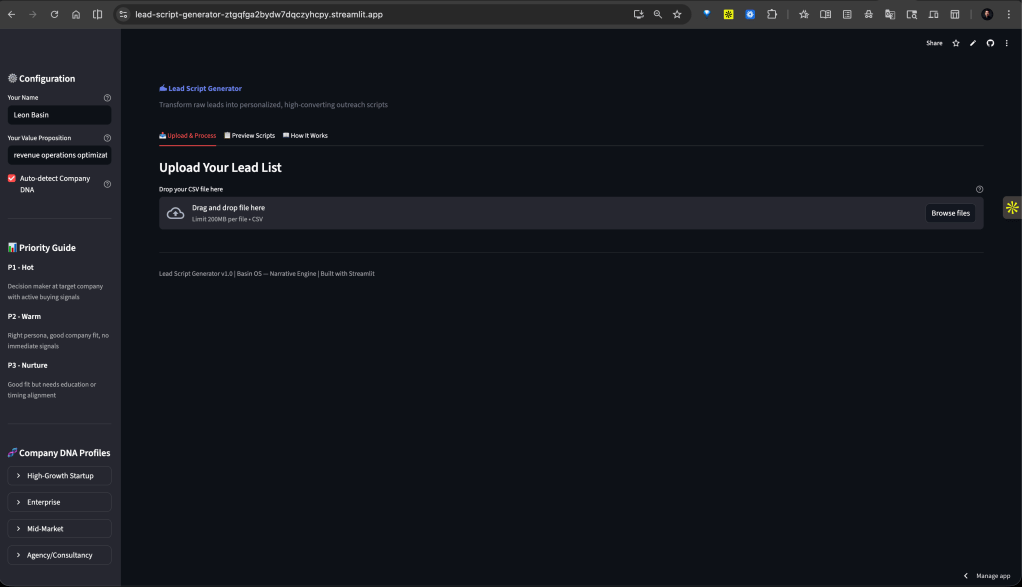 Try the tool live here: https://lead-script-generator-ztgqfga2bydw7dqczyhcpy.streamlit.app/